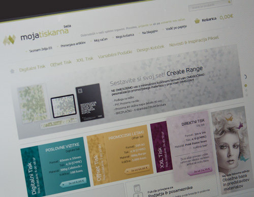 mojatiskarna - spletni portail in kalkulacijski sistem PROJEKT: Grafična zasnova; zasnova funkcionalnosti; razvoj CMS in kalkulacijskega sistema; programiranje; fotografiranje; priprava grafičnih elementov